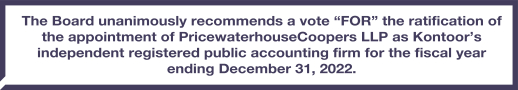 | 2. | to ratify the appointment of PricewaterhouseCoopers LLP as Kontoors independent registered public accounting firm for the fiscal year ending December 31, 2022; |