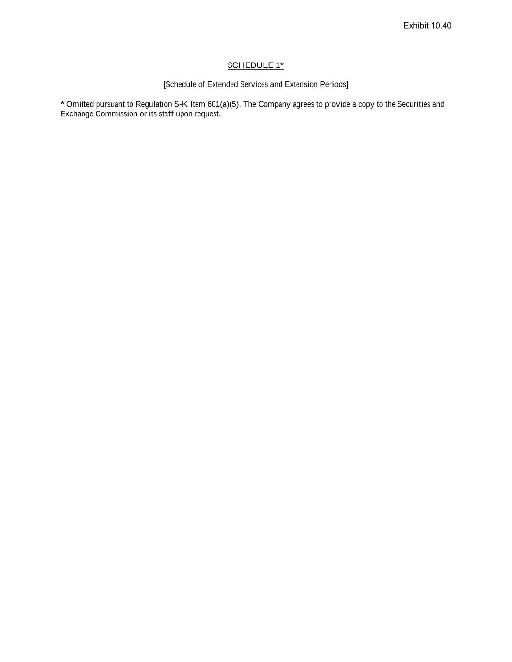 SCHEDULE 1* [Schedule of Extended Services and Extension Periods] * Omitted pursuant to Regulation S-K Item 601(a)(5). The Company agrees to provide a copy to the Securities and Exchange Commission or its staff upon request. Exhibit 10.40